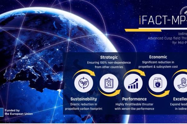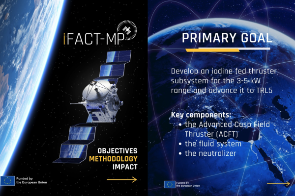 The iFACT-MP initiative, short for iodine Fed Advanced Cusp field Thruster for Mid-Power, launched in January 2024, is a 24-month project funded by the European Union. Its primary objective is to enhance and solidify Europe's leading role in iodine EP (Electric Propulsion).